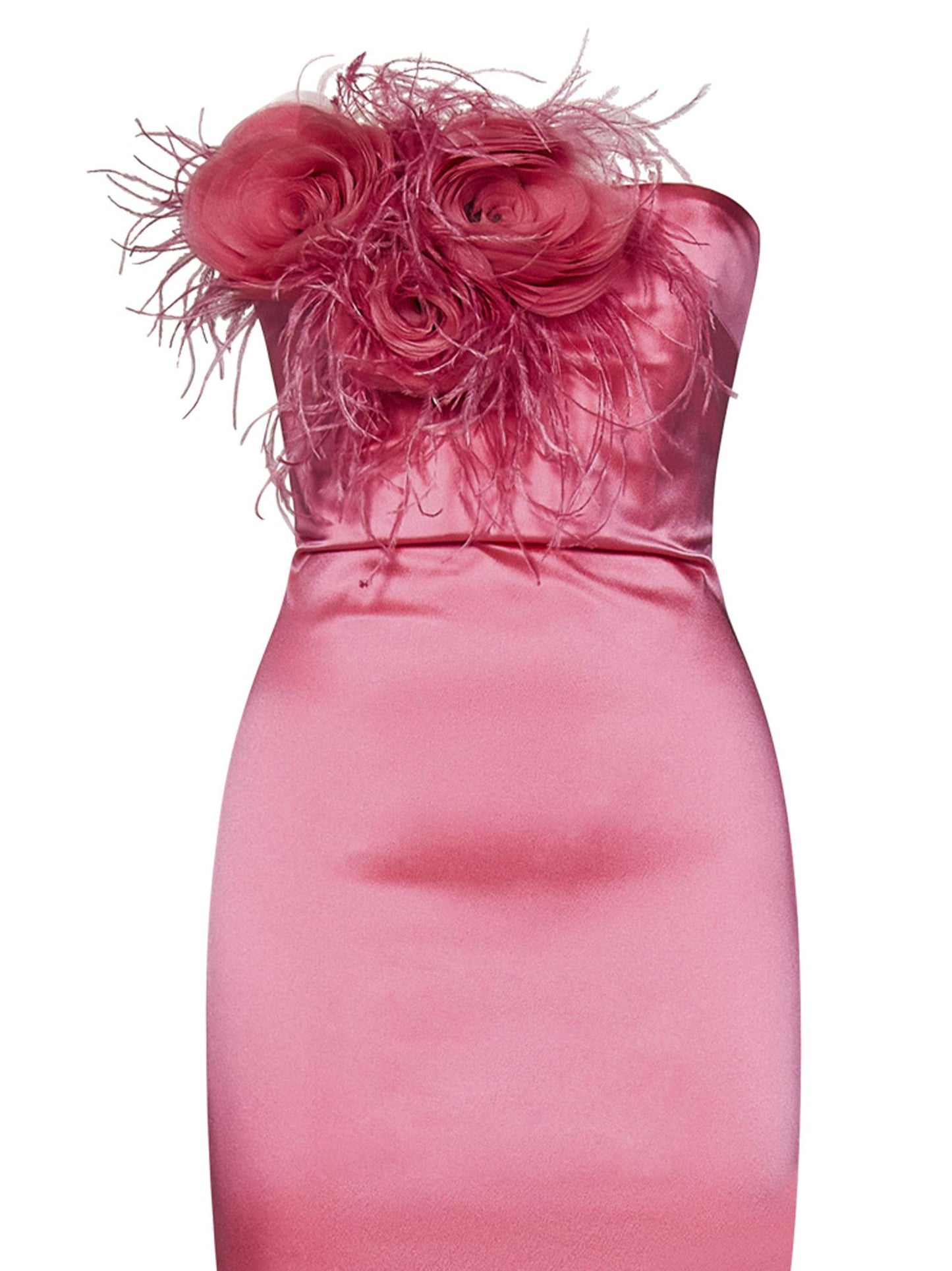 - Decorazione rimovibile di rose in georgette e piume di struzzo tono su tono sul davanti