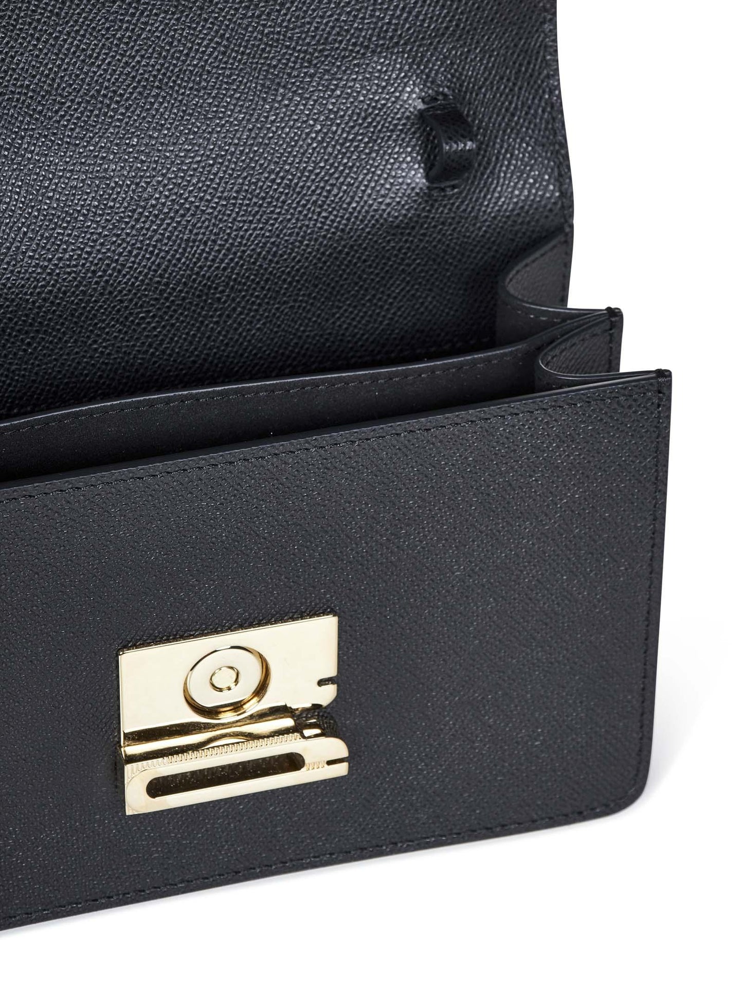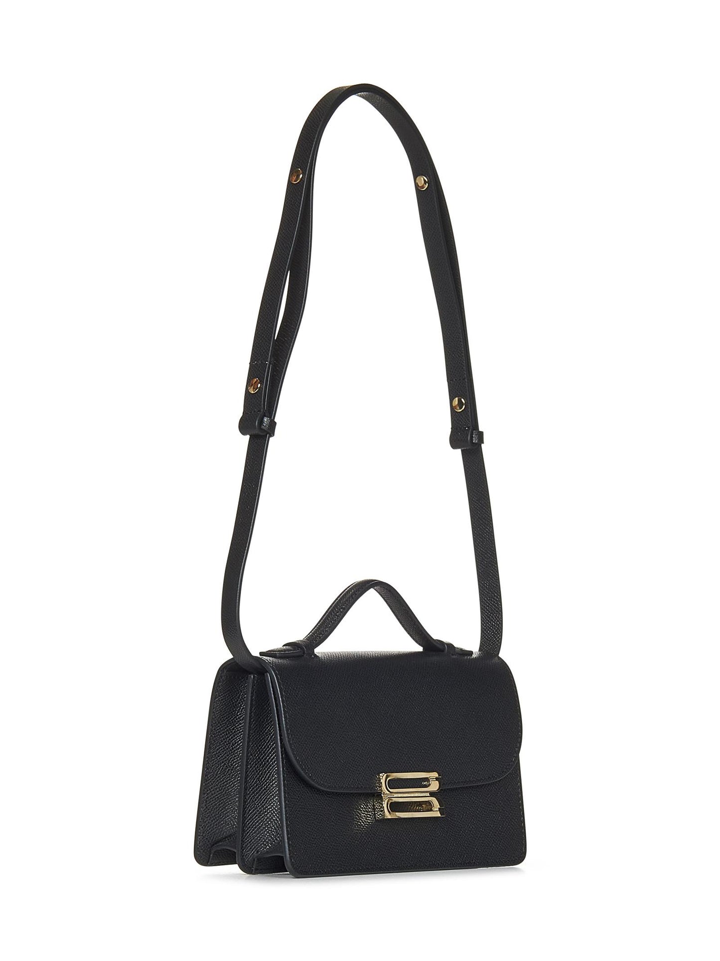 - Chiusura frontale con patta; Fibbia a B in metallo color oro