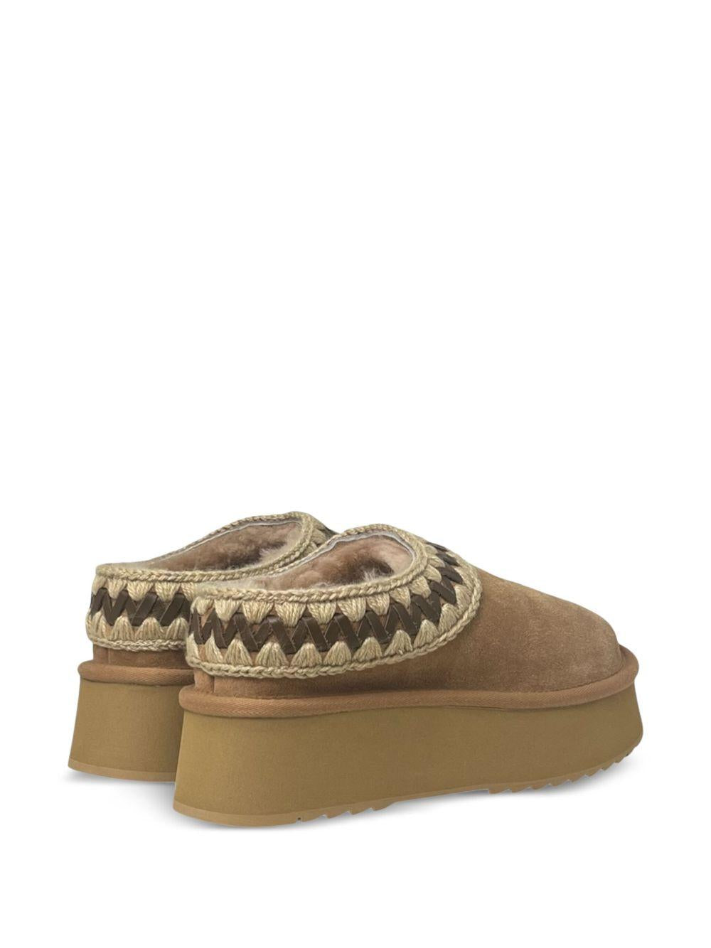 - Tomaia in vero montone double-face con dettagli in lana all'uncinetto