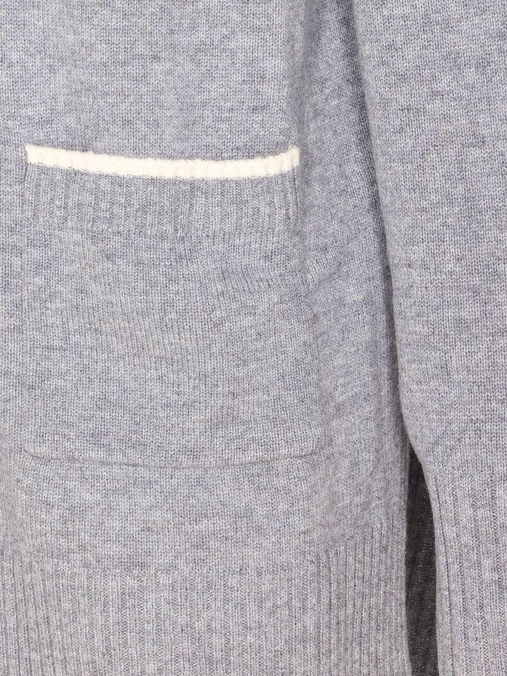 - Tasche frontali a toppa con bordo a coste con finitura a contrasto