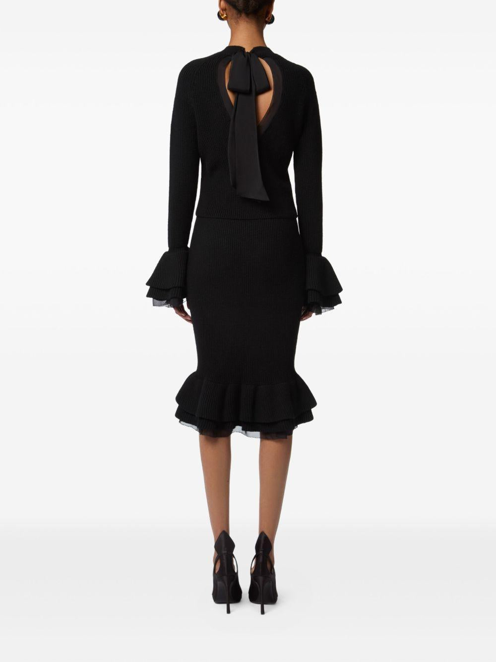 - Peplo arricciato e una balza plissettata a contrasto