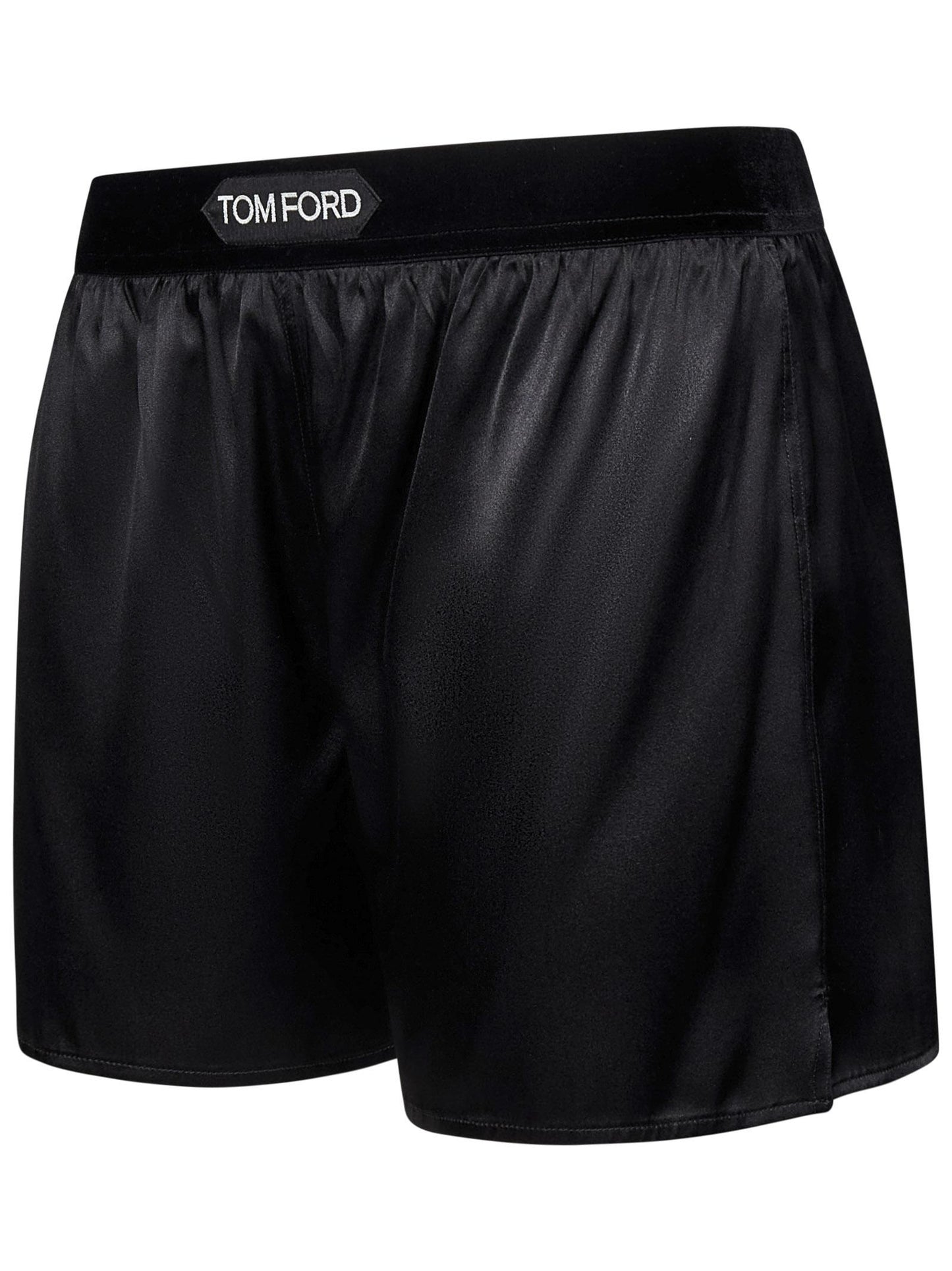 - Banda nera elasticizzata in velluto in vita con etichetta con logo TOM FORD bianco in jacquard cucita sul davanti