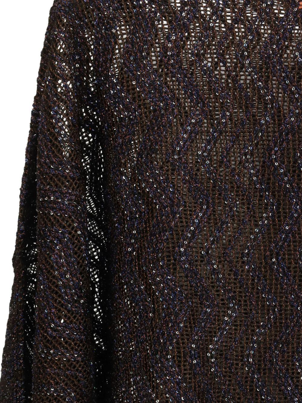 - Lavorazione a rete con motivo zig zag e paillettes all-over