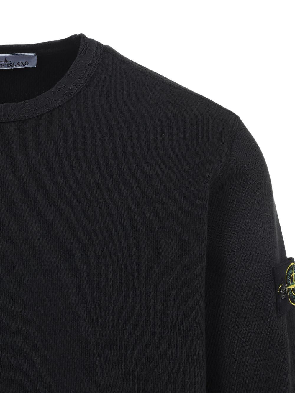 - Maniche lunghe, inserto elasticizzato a costine sotto il giromanica; badge Stone Island sulla manica sinistra