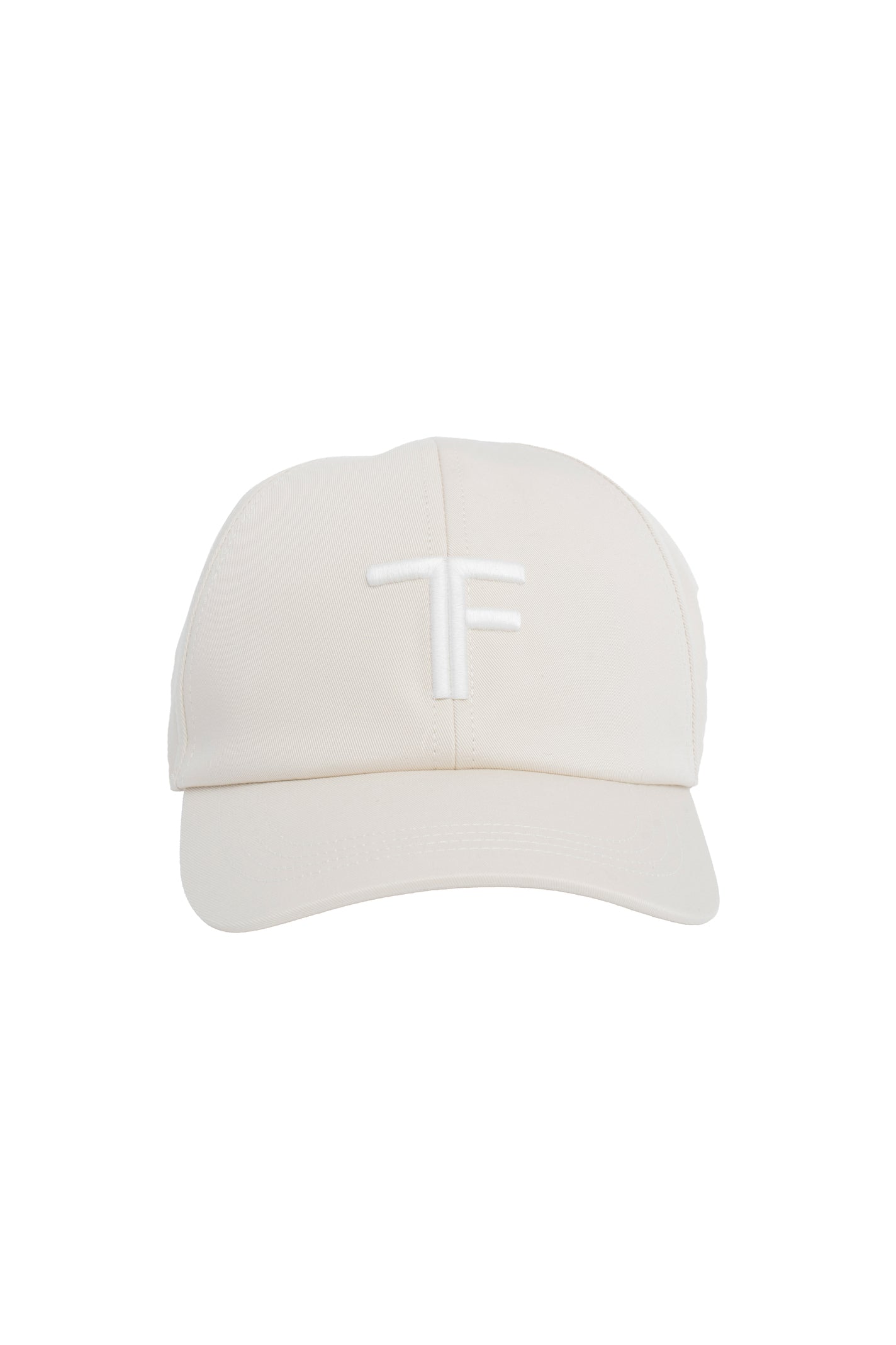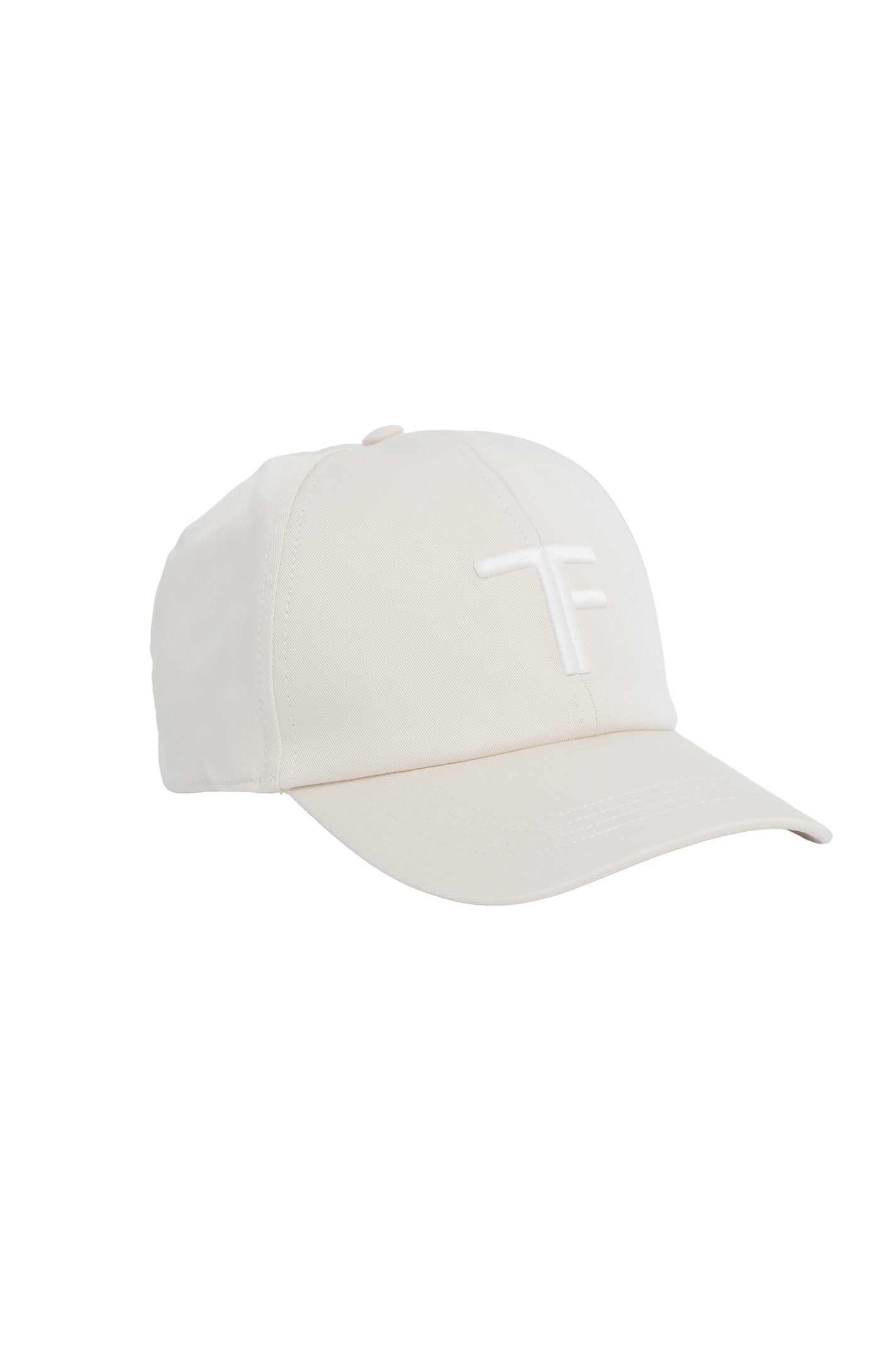 Cappello da baseball in cotone color panna con ricamo logo TF bianco sul davanti.