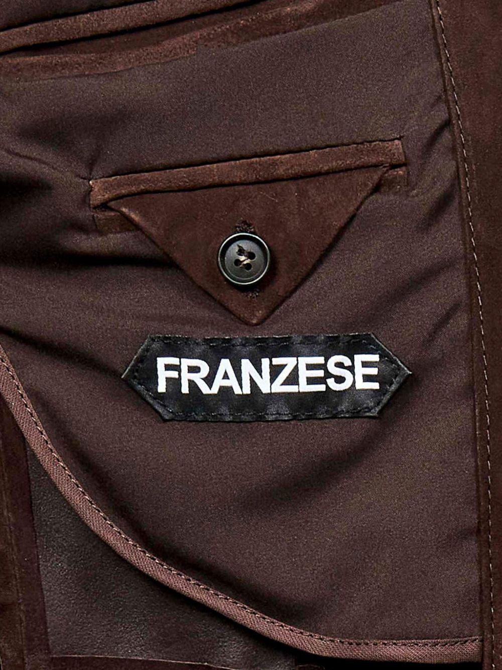 In pregiato camoscio ed interamente realizzata a mano, la giacca modello Gianni Agnelli di Franzese Napoli con ampio rever a lancia, tasche a toppa laterali e maniche lunghe a camicia promette di elevare il vostro guardaroba in perfetto stile Made in Italy.