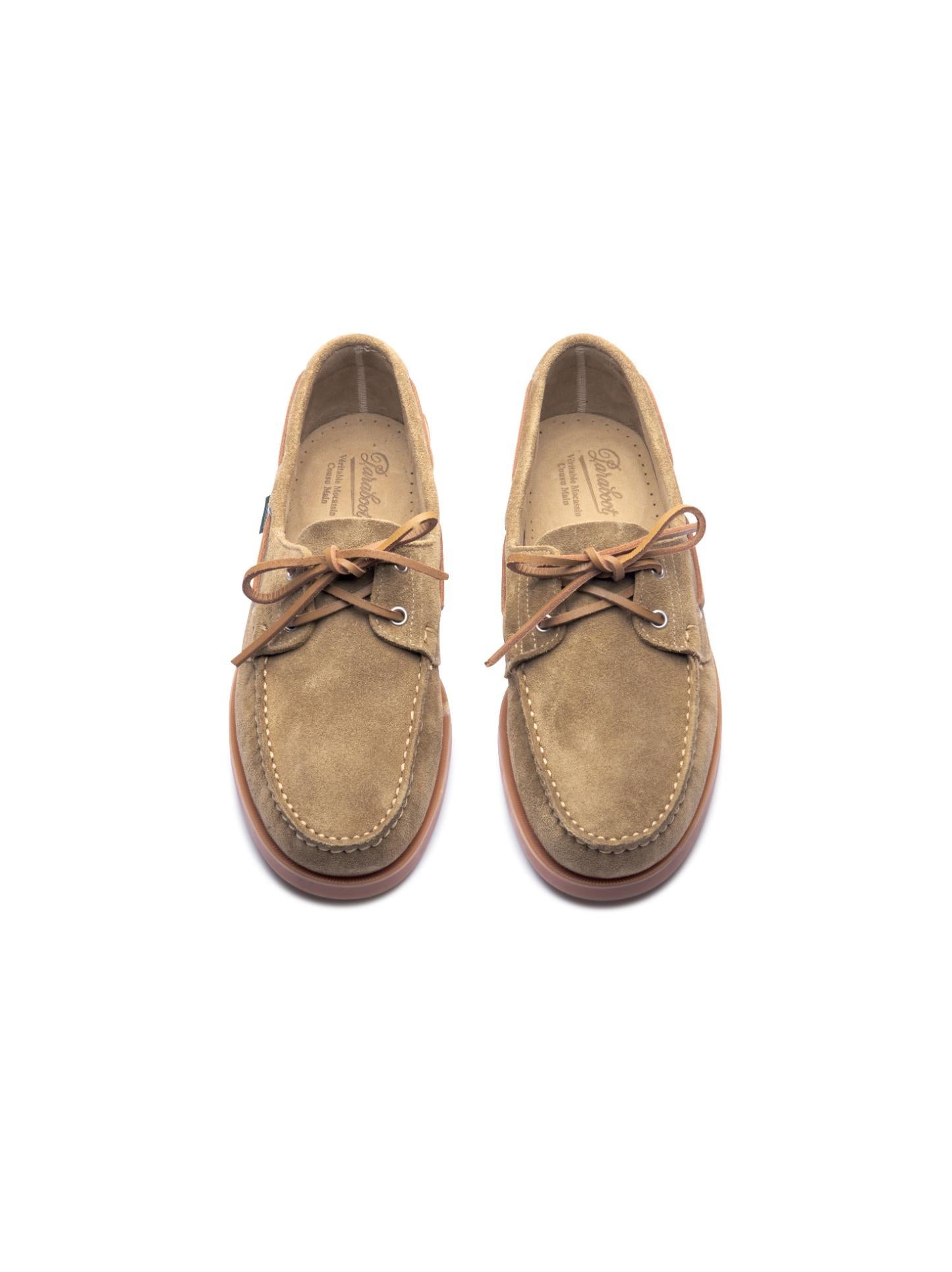 - Tomaia in pelle scamosciata con lacci passavela; etichetta logata sul lato