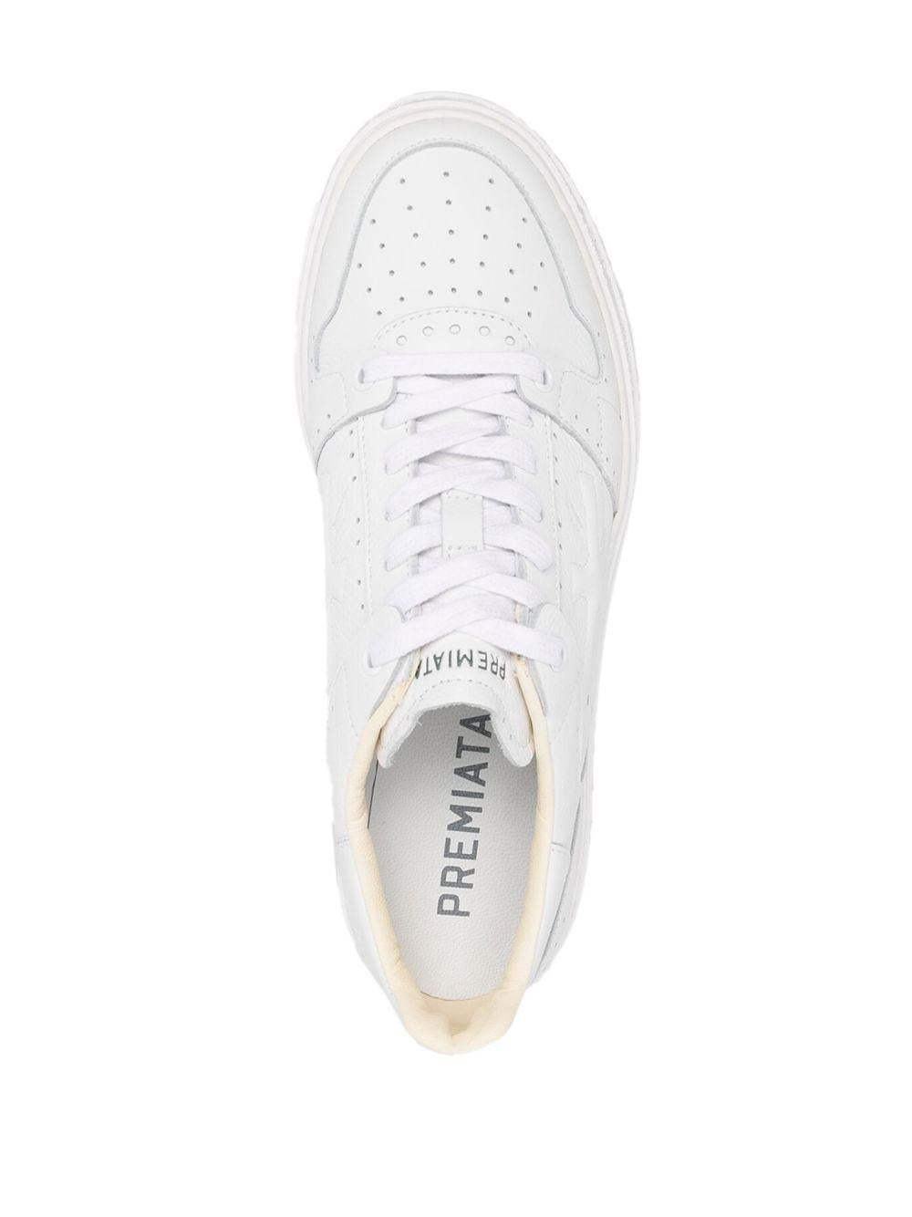 - White synthetic leather upper with brogue-inspired micro-perforations and tone-on-tone inserts