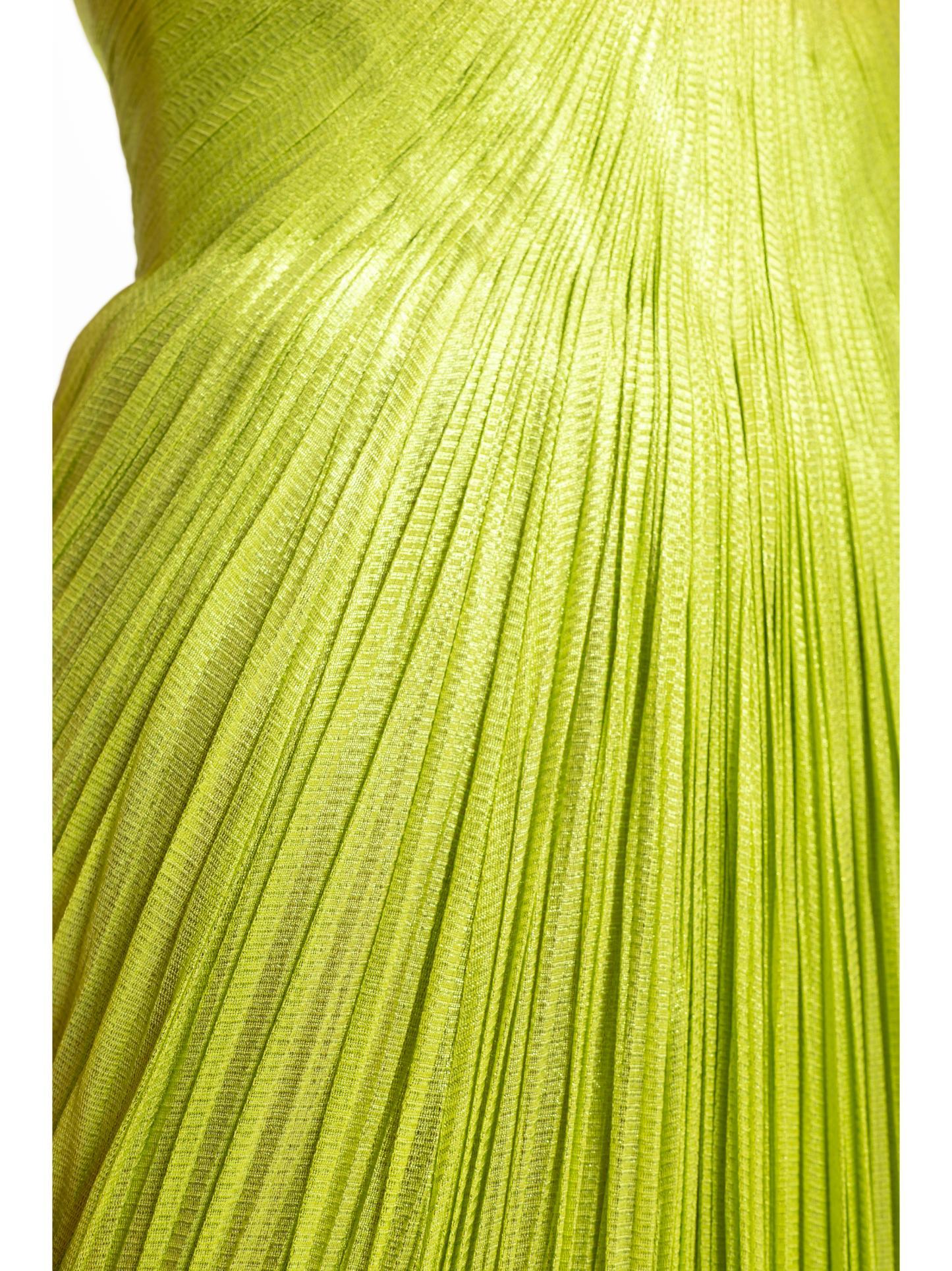 - Long drape on the back of the skirt