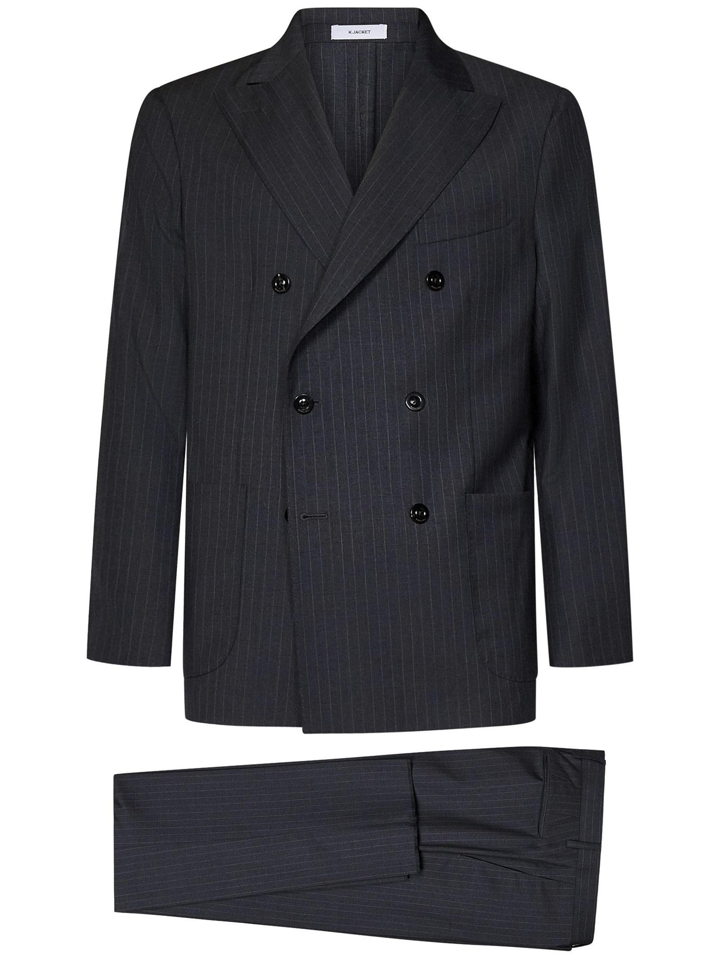 - Blazer: Double-breasted closure; Peak lapel; Long sleeves, buttoned cuffs; Front patch pockets, chest pocket, internal pockets; Side slits on the back; Unlined and deconstructed