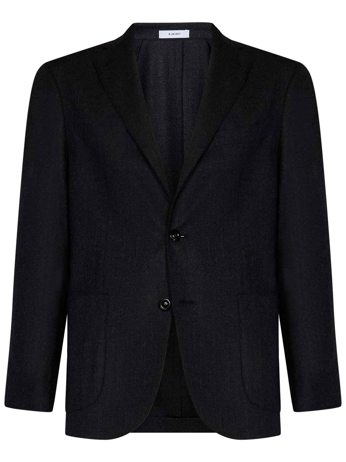- Single-breasted jacket: front button fastening, notched lapels, buttoned cuffs, two patch pockets on the sides, welt pocket on the chest, internal welt pockets, double vent on the back