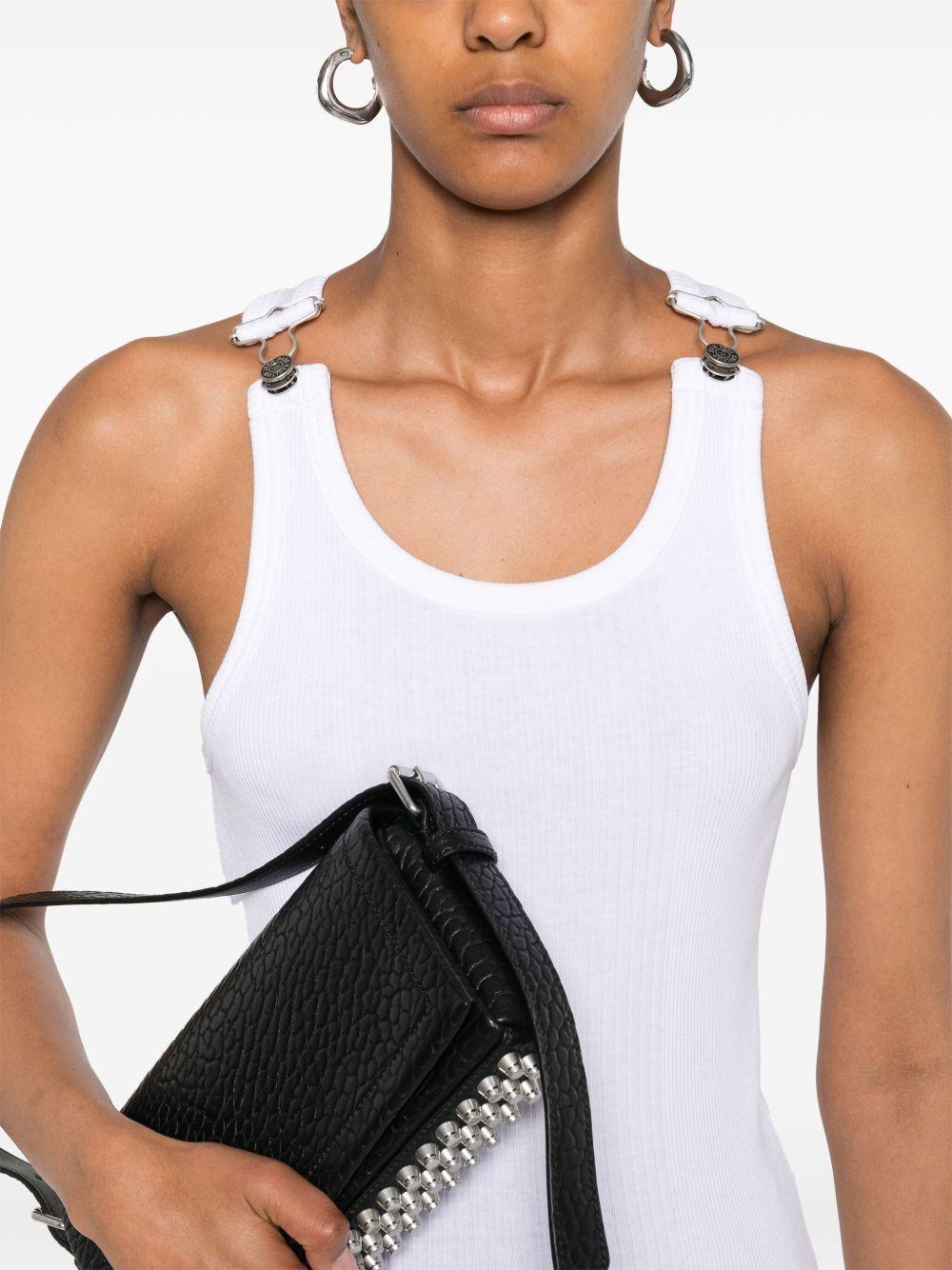 - Spalline in stile salopette in metallo argento incise da logo